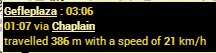 Uppmätt hastighet mellan två zoner, 21 km/h: